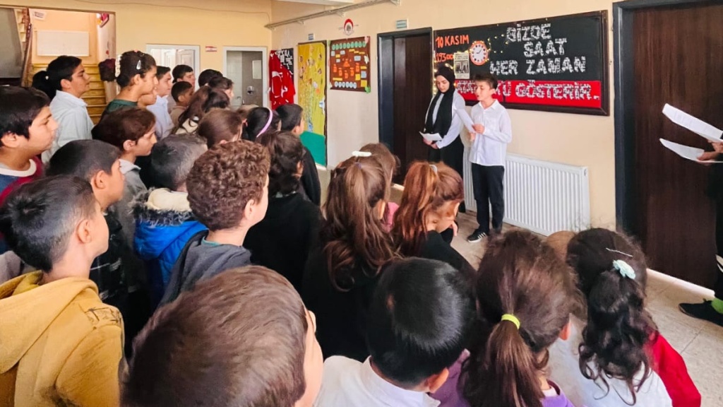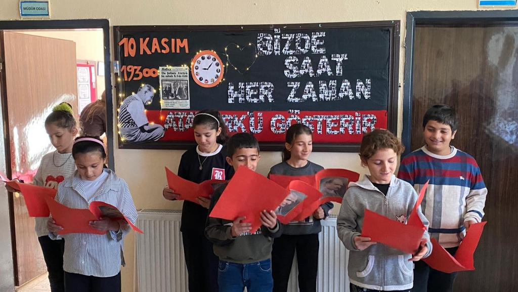 10 Kasım Atatürk'ü anma programı okul öğretmenlerimiz ve öğrencilerimizin katılımı ile tamamlandı. Programda günün anlam ve önemini belirten konuşma okul öncesi öğretmenimiz Hatice KOÇAK tarafından yapıldı. Ulu önderimiz ve ebediyete intikal etmiş bütün şehitlerimiz adına saygı duruşu ve ardından İstiklal Marşı ile başlayan programımız okulumuz öğrencilerinden oluşan koromuz ile sonlandı.